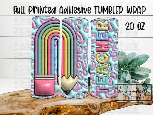 RTS PENCIL BOW FLOWERS CUP WRAP 20 oz STRAIGHT TUMBLER WRAP 9.6x8.3