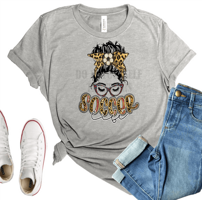 Soccer Life mom bun glasses sports Adult size DTF TRANSFER PRINT TO ORDER 77